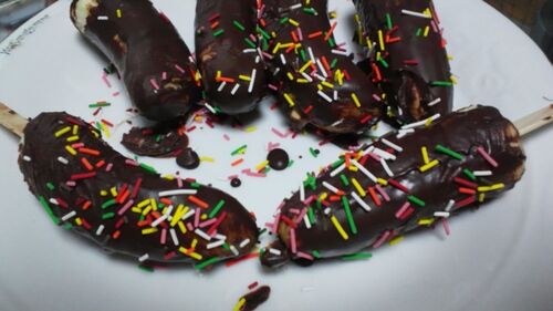 今日のデザート、チョコバナナです。 手作りキットが売っていたらしく作ってくれました。 時間勝負らしく今回は見た目失敗だそうですが、中身は一緒なので美味しく頂けました。 そして、嫁さんの趣味 決してラベルなしのペットボトルがたくさん入っているわ…